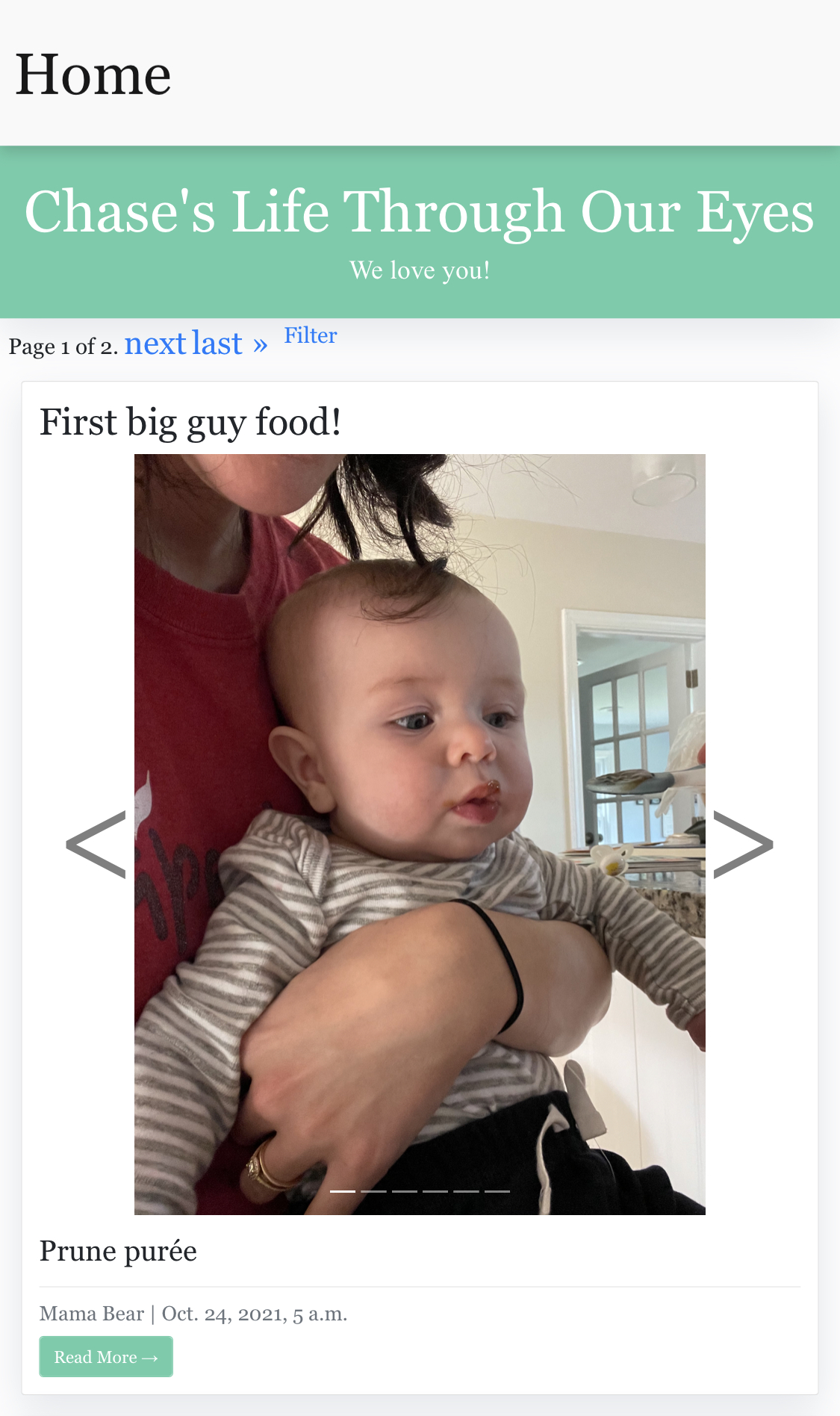 Created a blog to host images to share with family. Also added a tracking feature to keep track of my son's feeding and naps. See https://github.com/tcpatch/django-blog for a template of this blog.